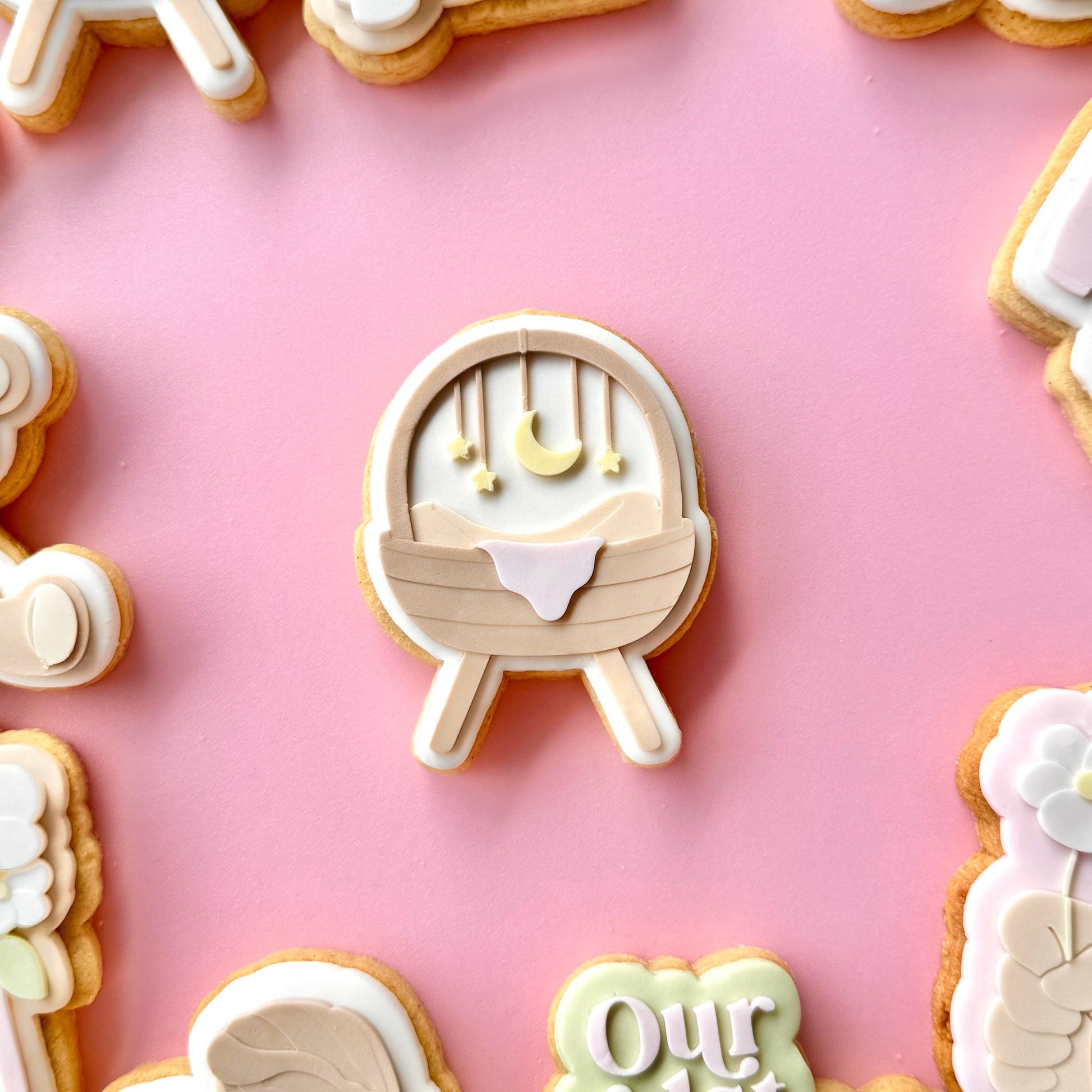 Handling: Press the stamp on your previously rolled out sugar paste (3mm approx.) using a rolling pin or your hands. Carefully remove the stamp to reveal the model and then cut with a cookie cutter!