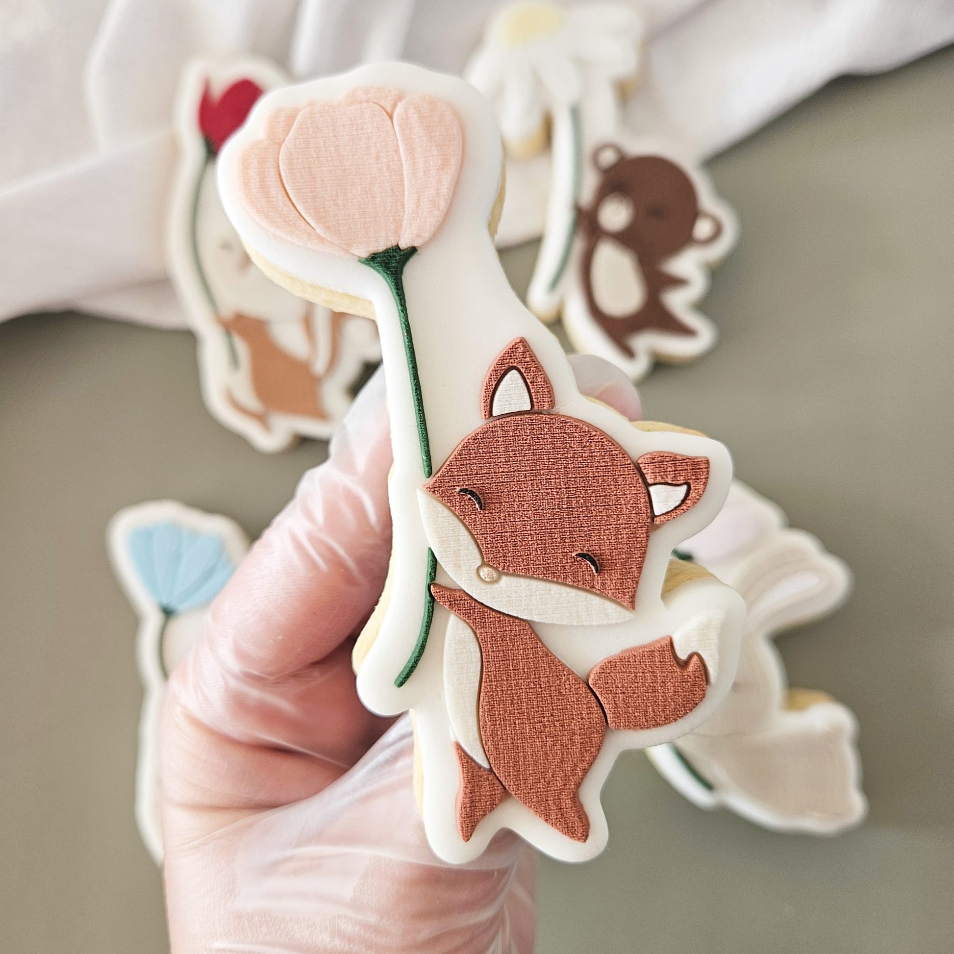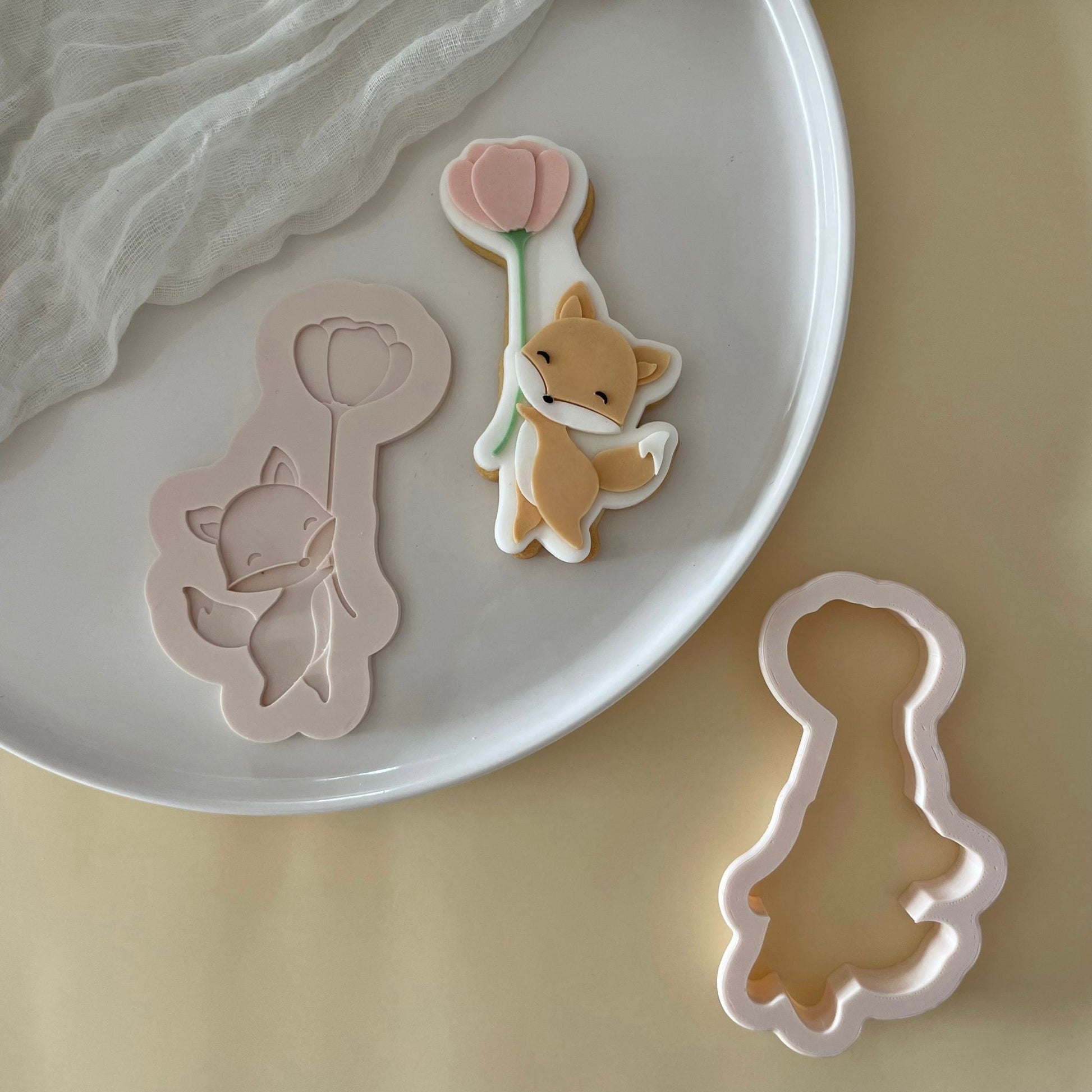 Handling: Press the stamp on your previously rolled out sugar paste (3mm approx.) using a rolling pin or your hands. Carefully remove the stamp to reveal the model and then cut with a cookie cutter!