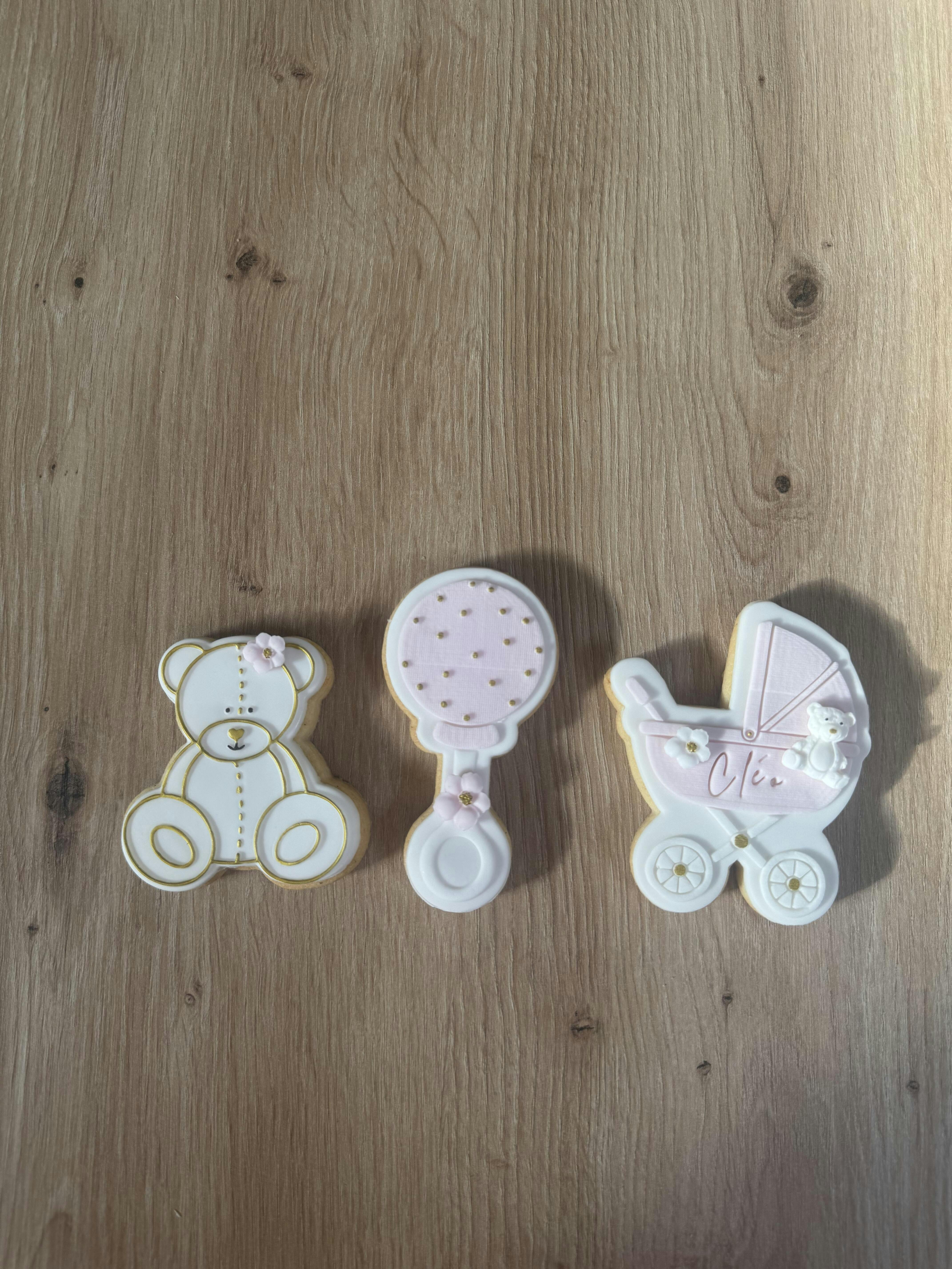 Manipulation : Effectuer une pression du tampon sur votre pâte à sucre préalablement étalée (3mm approx.) à l'aide d'un rouleau à pâtisser ou de vos mains. Retirer délicatement le tampon pour faire apparaître le modèle et découper ensuite avec un emporte pièce !